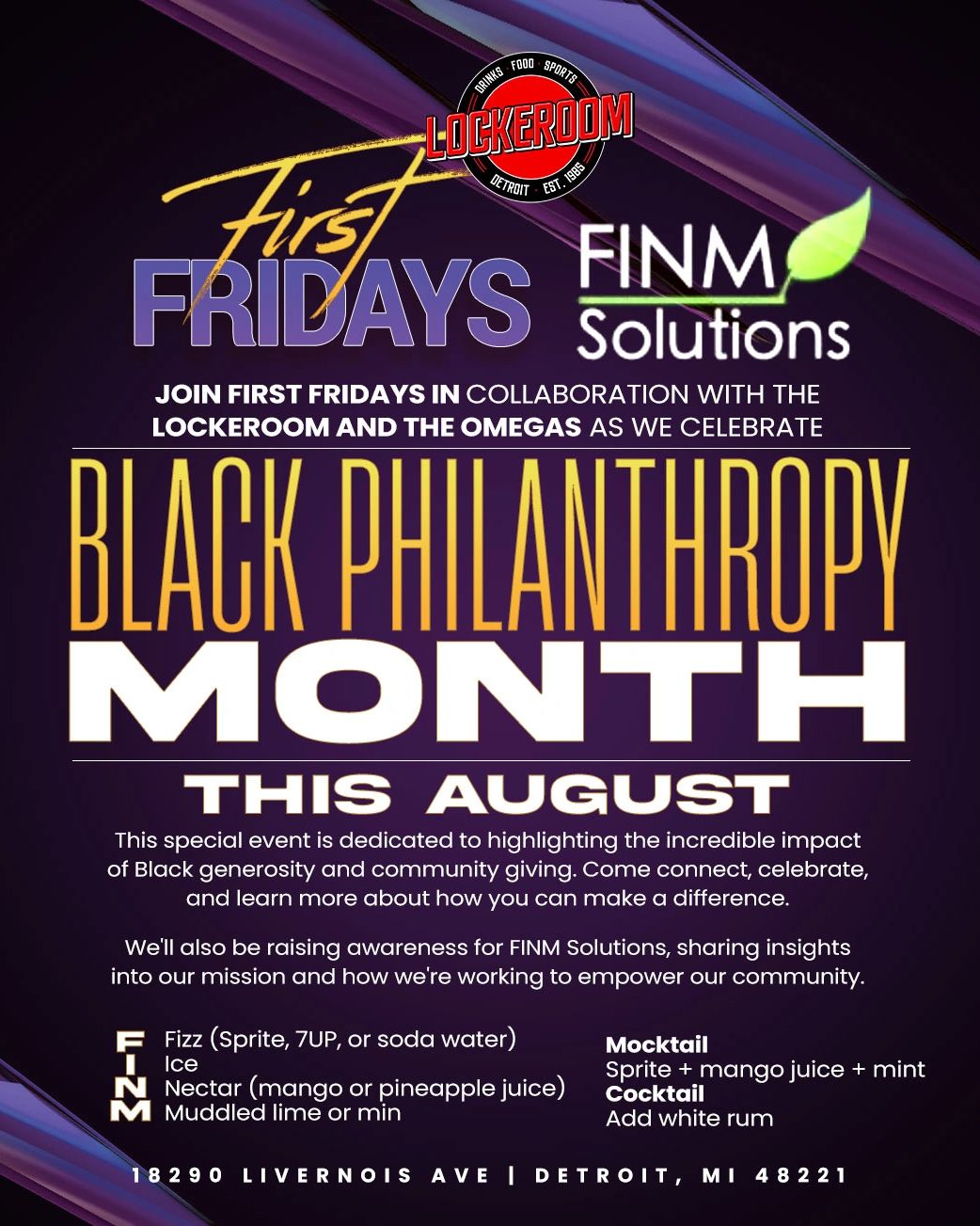 Just us "First Fridays" in collaboration with The Lockeroom and The Omegas as we celebrate Black Philanthropy Month.